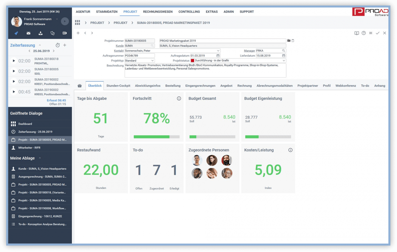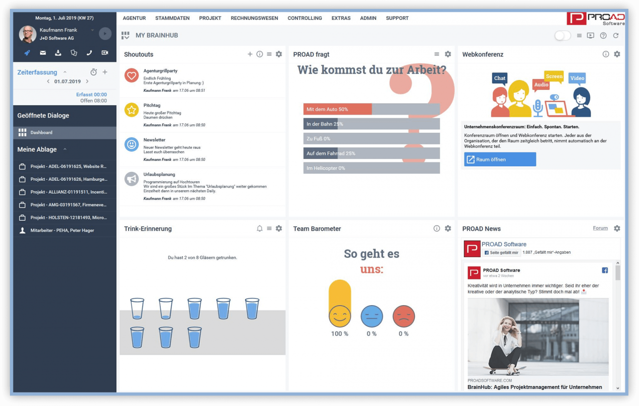 Egal wo ihr gerade seid – PROAD ist eine Remote Work Software und ermöglicht euch Kunden, Projekte, Ressourcen und Aufgaben zentral zu steuern. Wer macht was? Was sind meine To Dos? Wann ist die nächste Deadline? Auf welchem Stand sind die Projekte? Mit PROAD bleibt euer Team organisiert und produktiv. Individuelle Dashboards helfen euch die wichtigsten Kennzahlen immer im Blick zu behalten und auch im Home Office eure Effizienz zu steigern.