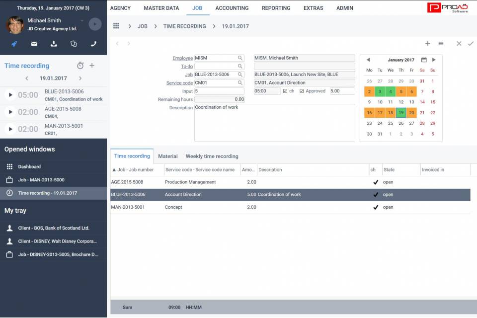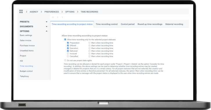 - Time recording